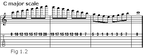 Notice that we started on the 8th fret, went all the way up to the next C, and came back down, passing the starting point and then back up to finish where we started.